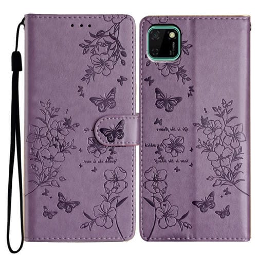 - 1x Funda de Cuero para Huawei Y5P Butterfly Love Flower con Relieve (Púrpura)