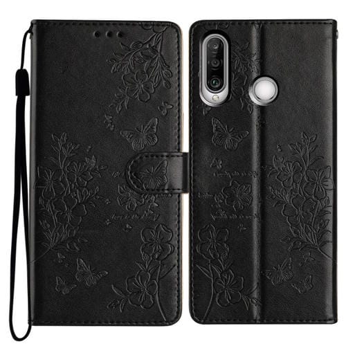 - 1x Funda de Cuero para Huawei Y6P Butterfly Love Flower en Relieve (Negro)