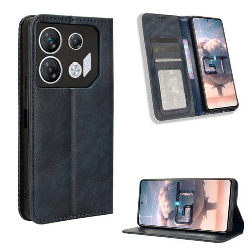 Funda de Cuero para Infinix Gt 10 Pro con Textura Retro y Hebilla Magnética (Azul)