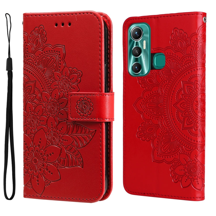 Funda de Cuero Flip Horizontal para Infinix Hot 11 con Patrón 7-Petal Flowers (Rojo)