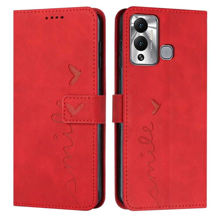 Funda de Cuero para Infinix Hot 12 Play Skin Feel con Patrón de Corazón (Rojo)