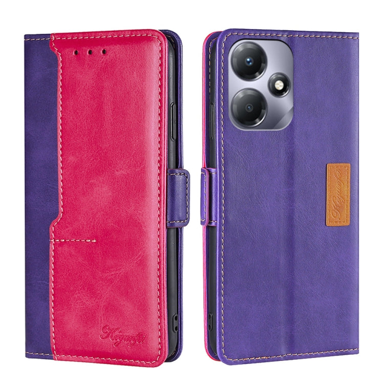 Caja de Teléfono de Cuero para Infinix Hot 30 Play 4G con Hebilla Lateral (Púrpura + Rosa Roja)