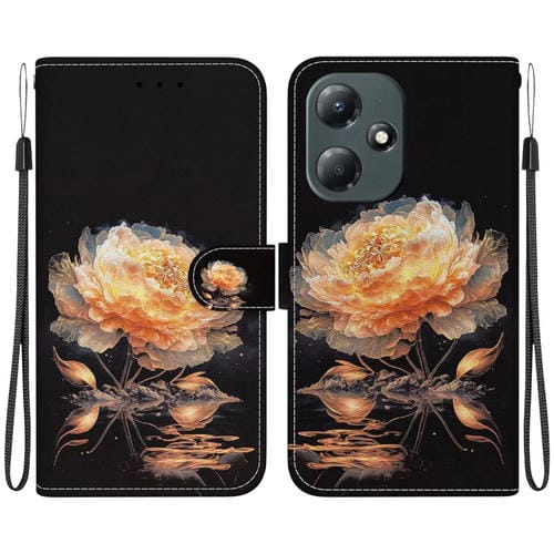 Funda para Teléfono Infinix Hot 30 Play X6835 Cuero Dibujo Coloreado Textura de Cristal (Peonía Dorada)