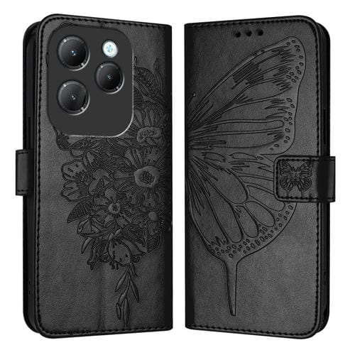 Funda de Cuero para Infinix Hot 40 y Hot 40 Pro con Mariposa en Relieve (Negro)
