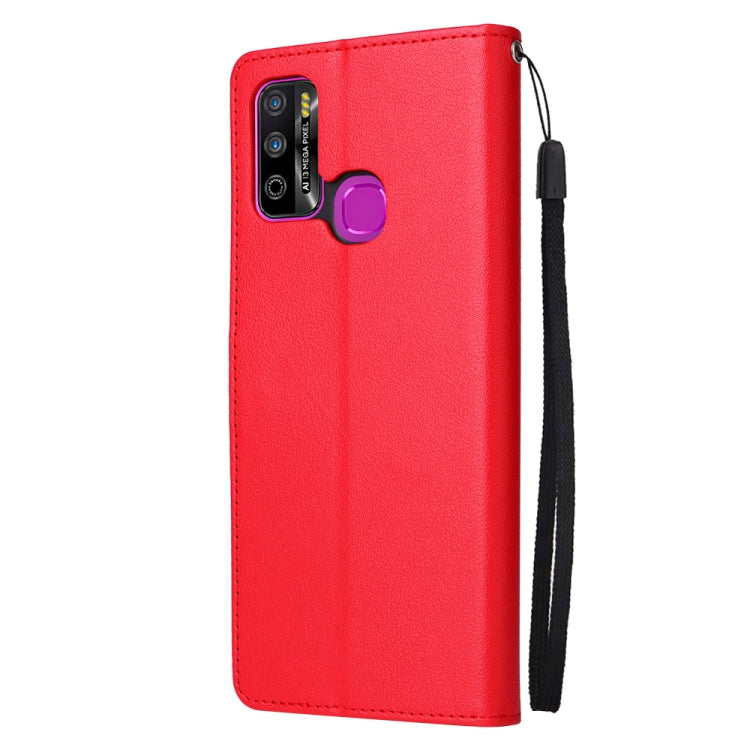 Estuche de Cuero para Infinix Hot 9 Play con Tapa Horizontal y 3 Ranuras para Tarjetas (Rojo)