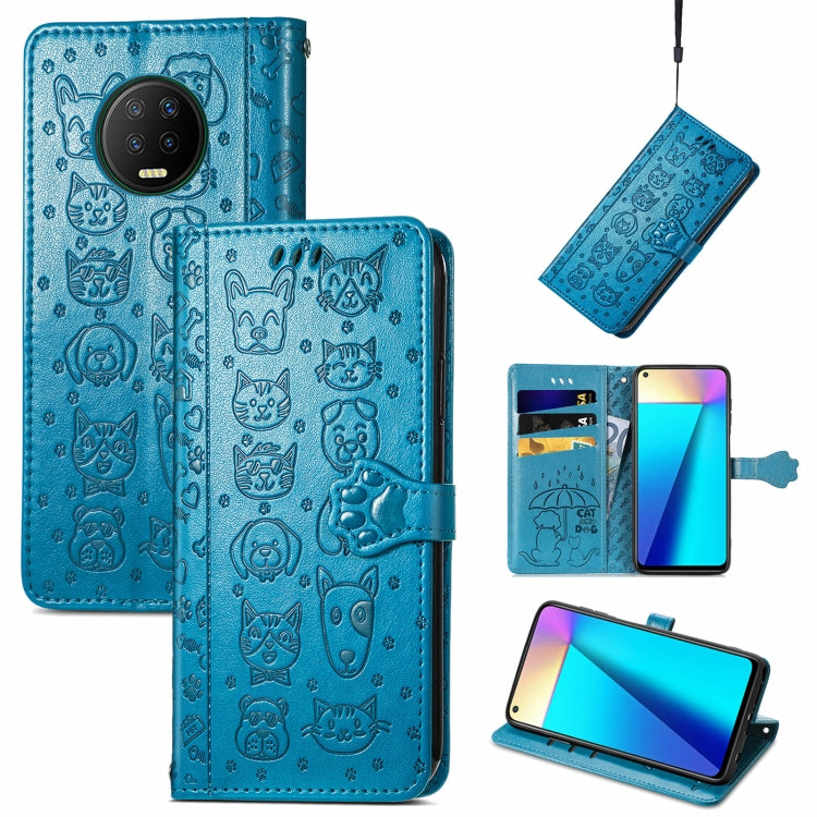 Funda Cuero para Infinix Nota 7 con Estampado Gato y Perro, Soporte, Tragamonedas y Cordón (Azul)
