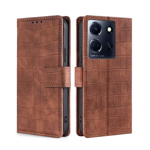 Funda de Cuero para Infinix Note 30 5G con Skin Feel Cocodrilo y Cierre Magnético (Marrón)