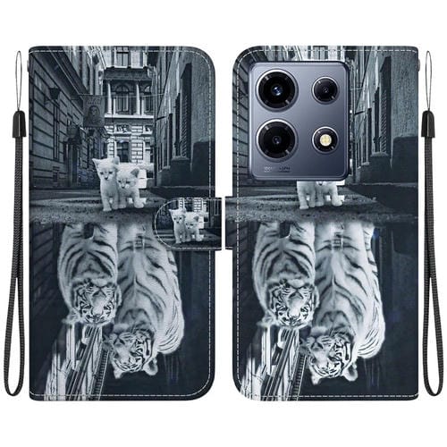 Funda de Cuero para Infinix Note 30 Vip con Dibujo Coloreado y Textura Crystal (Reflejo Tigre Gato)