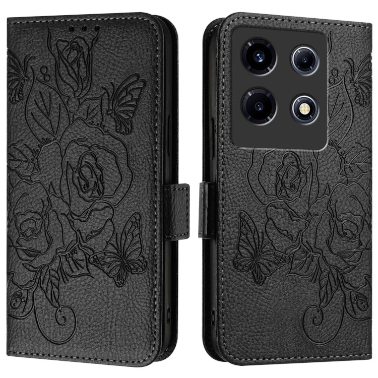 Estuche de Cuero Antirrobo para Infinix Note 30 Vip con Relieve Rose RFID (Negro)