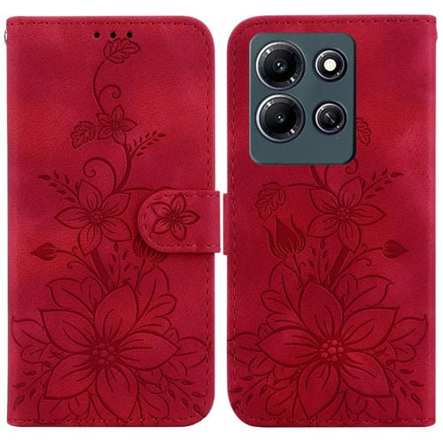 Funda de Cuero con Relieve Lily para Infinix Note 30I (Rojo)