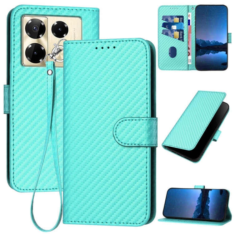 Funda de Cuero para Infinix Note 40 Pro 4G/5G Yx0070 con Hebilla de Fibra de Carbono y Cordón (Azul Claro)