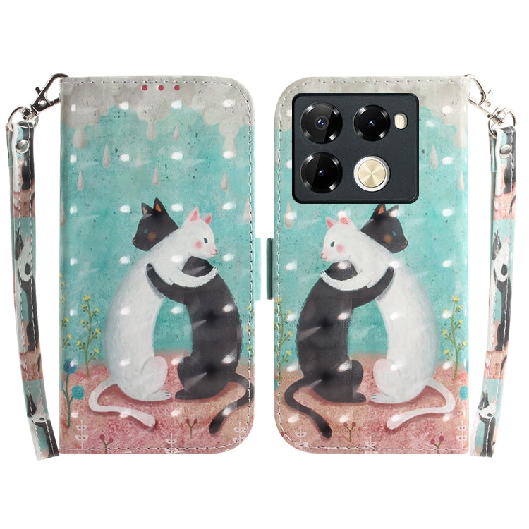 Funda para Infinix Note 40 Pro + 5G de Cuero con Tapa Horizontal 3D (Gato Blanco Negro)
