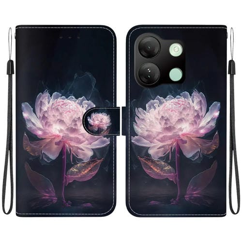 Funda de Cuero para Infinix Smart 7 HD con Dibujo Coloreado y Textura de Cristal (Peonía Púrpura)