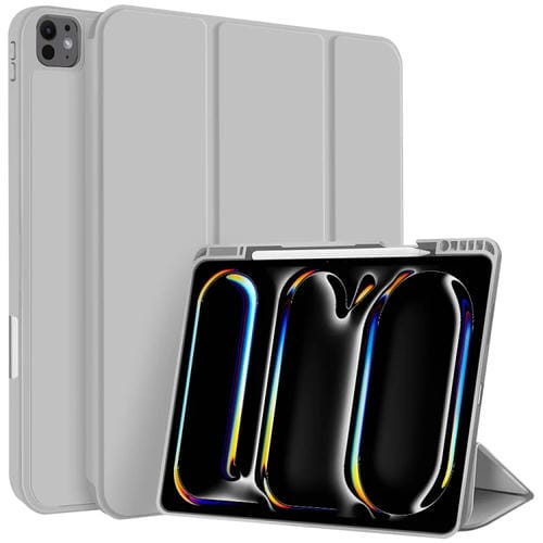 Funda inteligente de cuero TPU para iPad Pro 11 (2024) con 3 pliegues y ranura para bolígrafo (Gris)