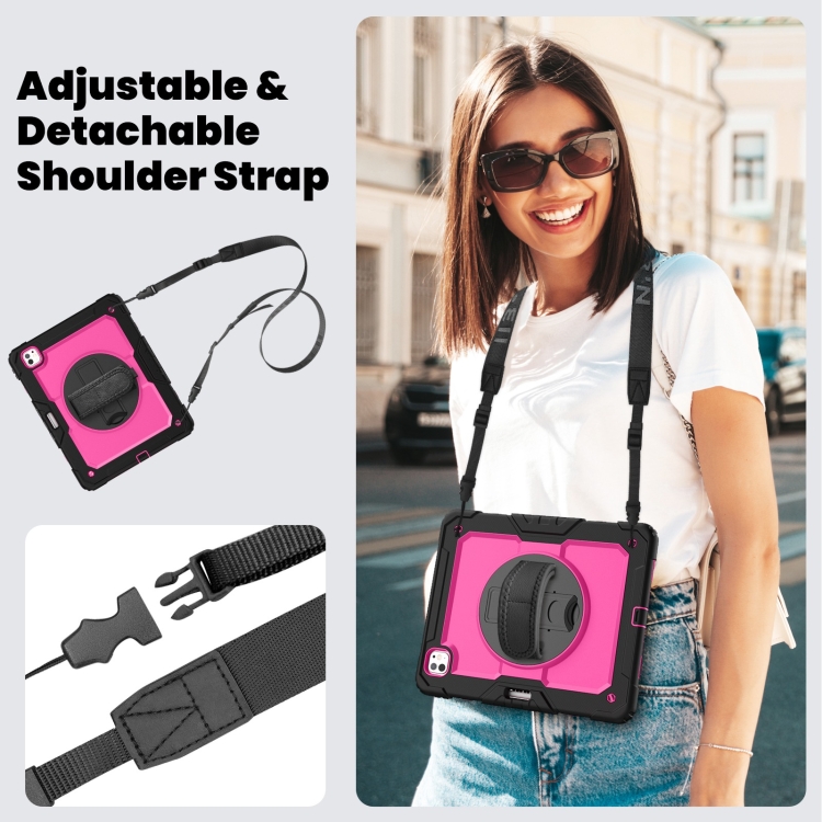Funda híbrida silicona para iPad Pro 13 (2024) con correa para el hombro (Rojo Rosa + Negro)
