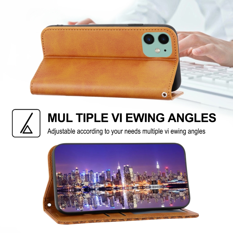 Funda para iPhone 11 Cubic Grid Becerro Textura Cierre Magnético de Cuero (Amarillo)