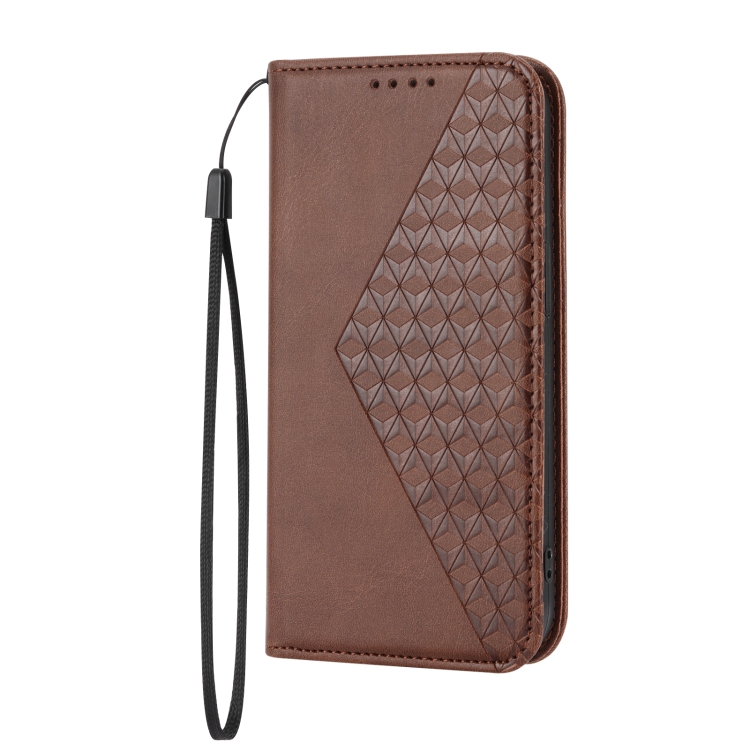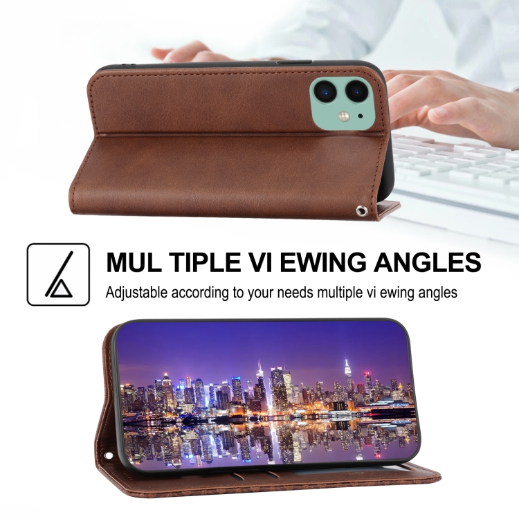 Funda para teléfono iPhone 11 Cubic Grid Calf Texture Cierre Magnético (Marrón)