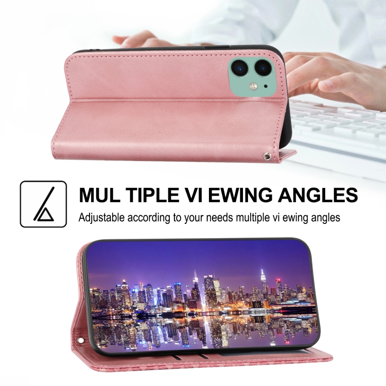 Funda para iPhone 11 Cubic Grid Calf Texture Cierre Magnético de Cuero (Oro Rosa)