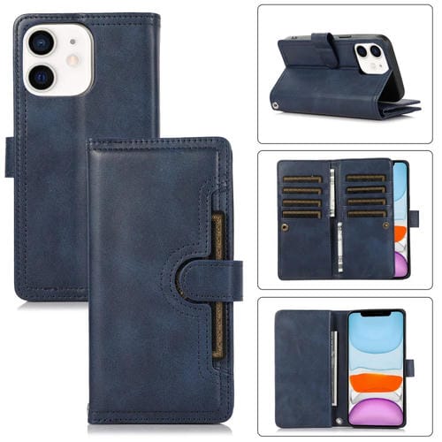 Funda para teléfono iPhone 11 de cuero con ranura para tarjeta y pulsera (Azul)