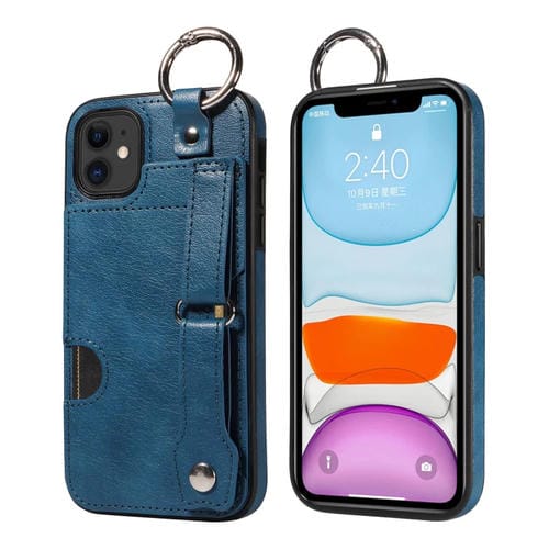 Funda para Teléfono iPhone 11 con Anillo y Ranura para Tarjeta Textura de Pantorrilla (Azul)