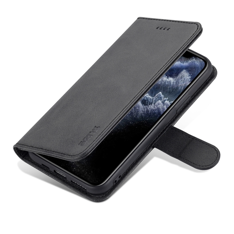 Funda de cuero Azns Skin Feel Calf Texture para iPhone 11 Pro con tapa horizontal, ranuras para tarjetas, soporte y billetera (Negro)