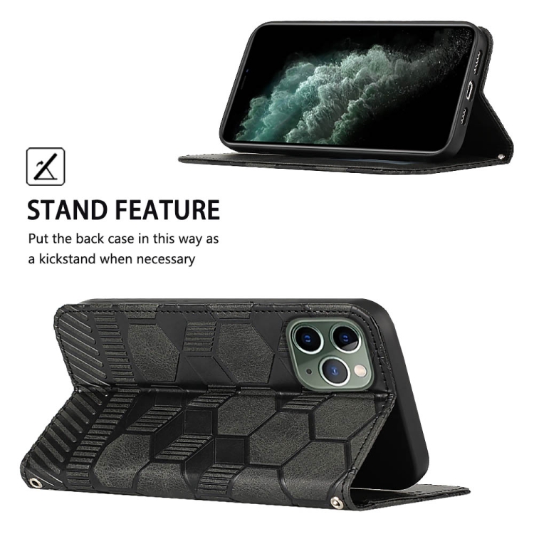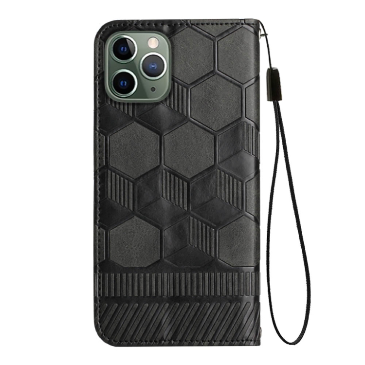 Funda de teléfono para iPhone 11 Pro con tapa de cuero magnético y textura de fútbol (Negro)