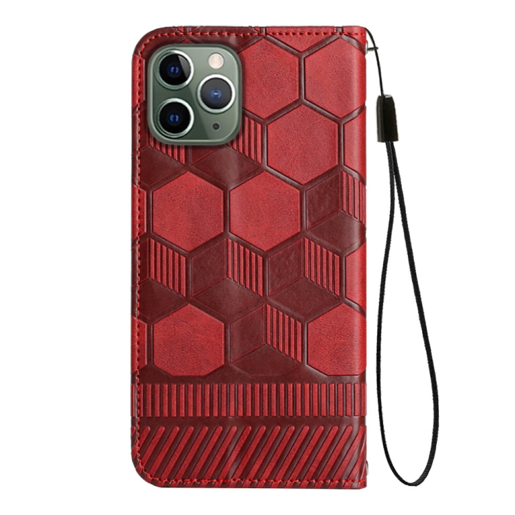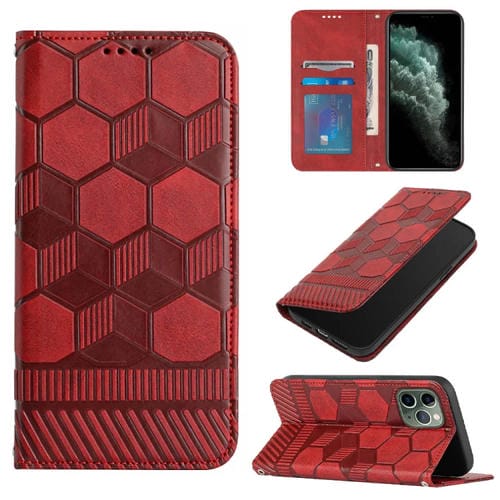 Funda de teléfono para iPhone 11 Pro con tapa de cuero magnético textura de fútbol (Rojo)