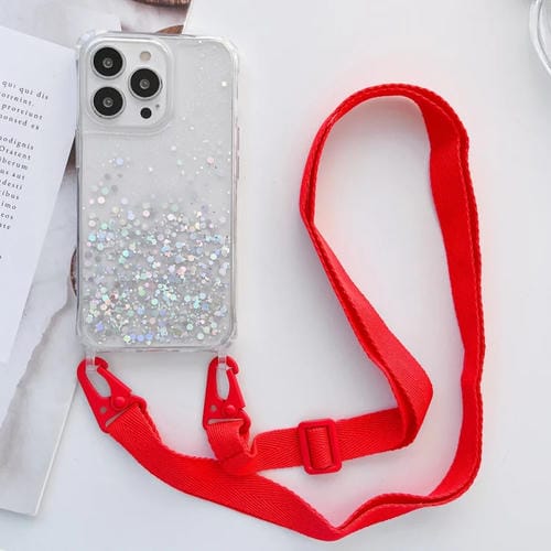 Funda para iPhone 11 Pro Lanyard Glitter Epoxy Clear Phone Case (Rojo)