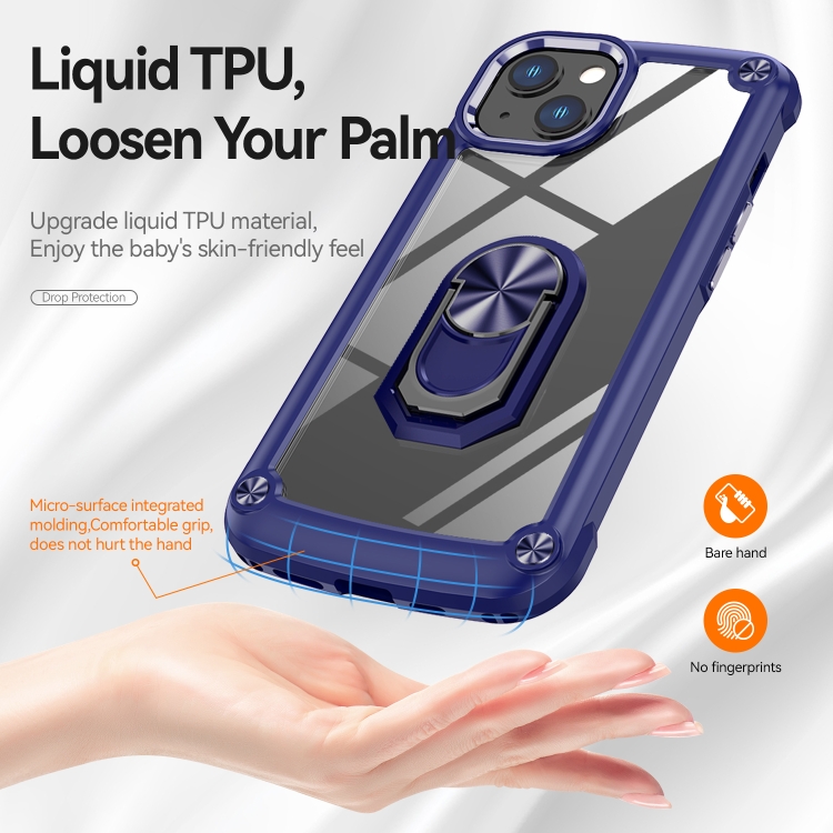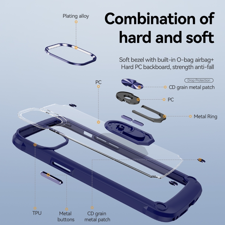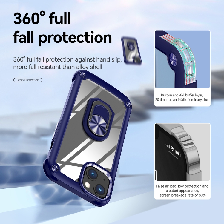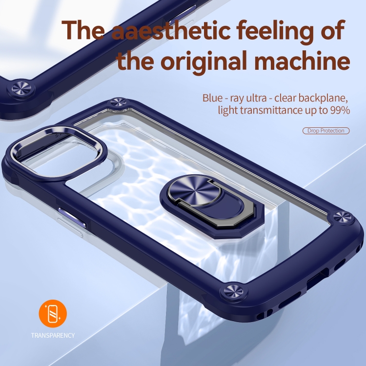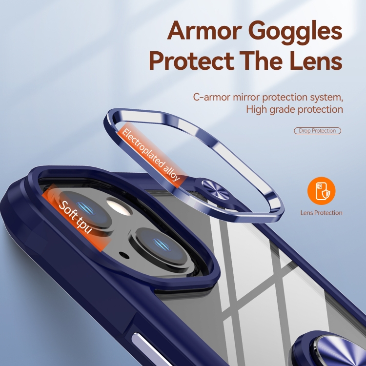 Estuche para Teléfono iPhone 11 TPU + PC con Protección de Lente y Soporte para Anillo (Azul)