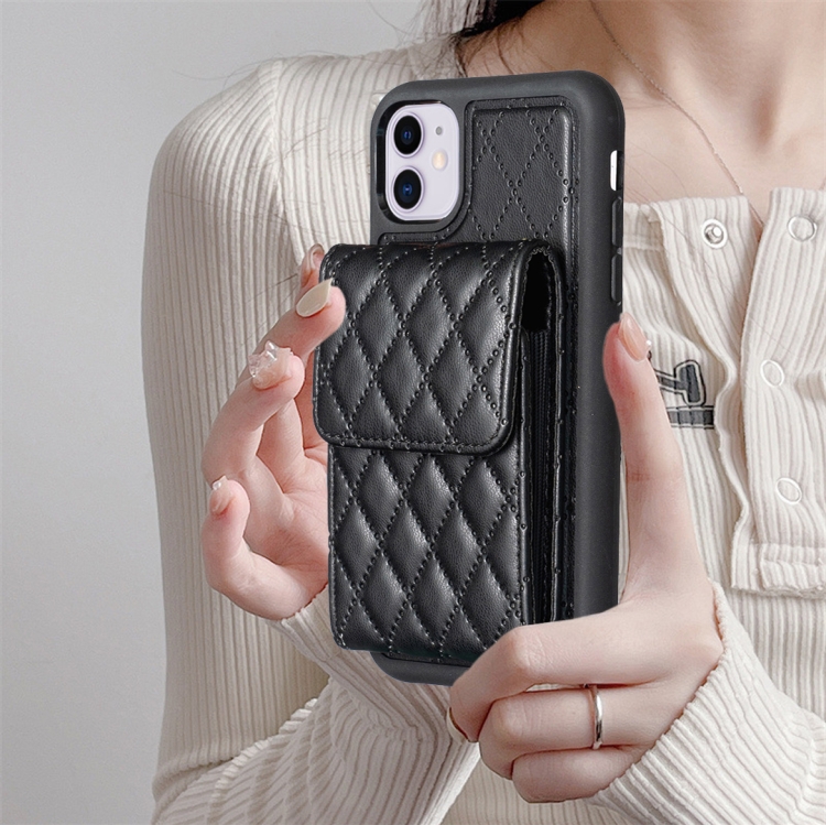 Funda Vertical Wallet Rhombic Leather para iPhone 11 (Negro)