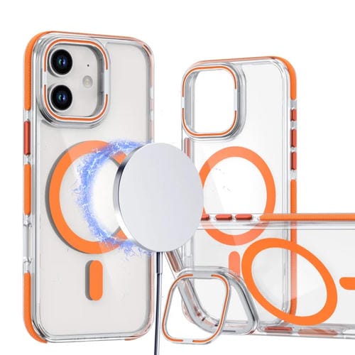 Estuche para teléfono iPhone 12/12 Pro Magsafe soporte abatible TPU híbrido acrílico (Naranja)