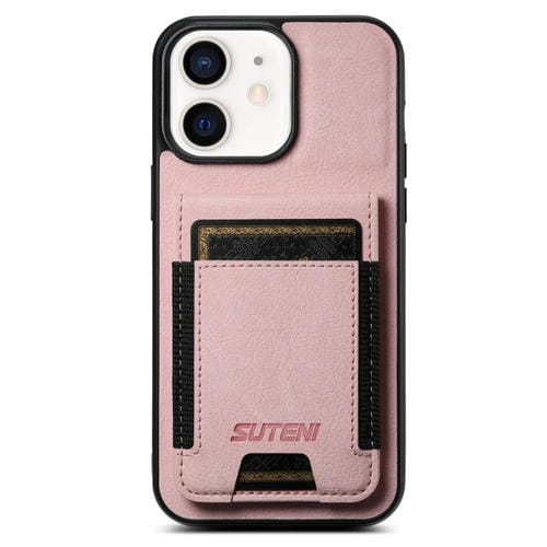Funda para Teléfono Suteni H03 para iPhone 12/12 Pro con Soporte para Tarjeta Cuero Litchi (Rosa)