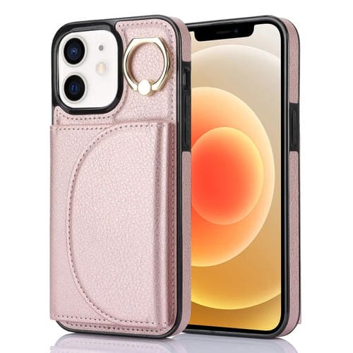 Funda para Teléfono Ym006 para iPhone 12/12 Pro con Soporte para Anillo y Tarjeta (Oro Rosa)
