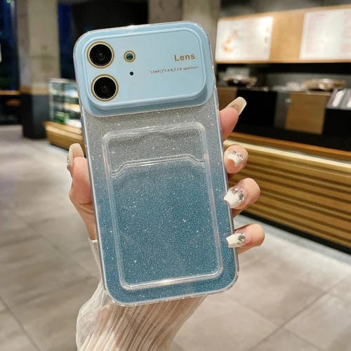 Estuche para Teléfono iPhone 12 Brillo Degradado Ventana Grande Ranura para Tarjeta (Azul)