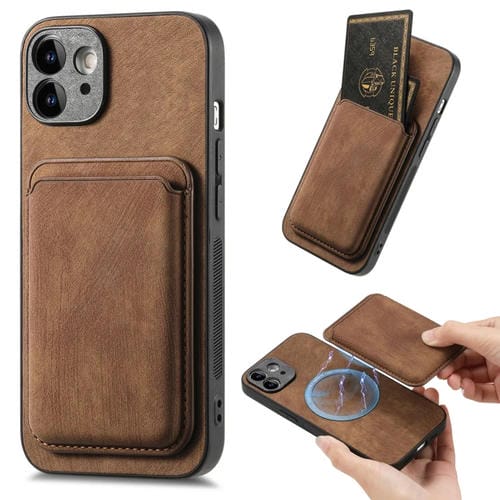 Funda para iPhone 12 Magnética con Bolsa de Tarjeta de Cuero Retro (Marrón)