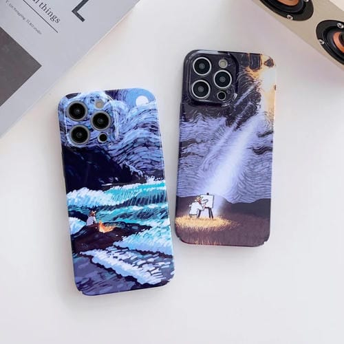 Funda para iPhone 12 Mini PC con Agujero Preciso y Patrón de Pintura al Óleo (Lluvia)