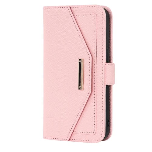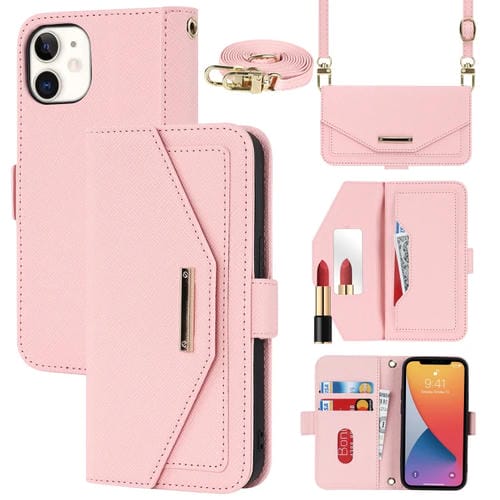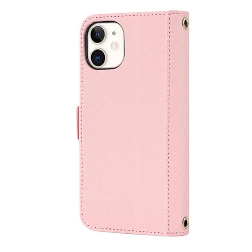 Funda para teléfono iPhone 12 Mini Cross Texture Lanyard de cuero (Rosa)
