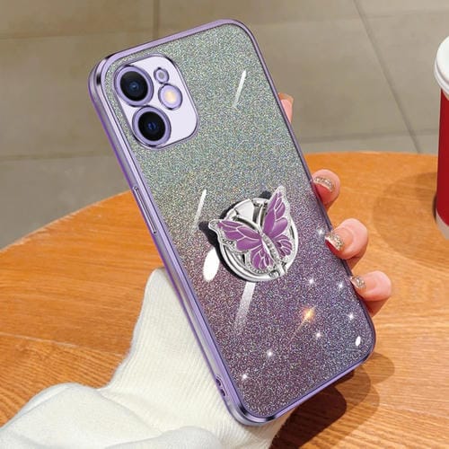 Funda para Teléfono TPU para iPhone 12 Mini con Soporte de Mariposa y Brillo Degradado (Púrpura)