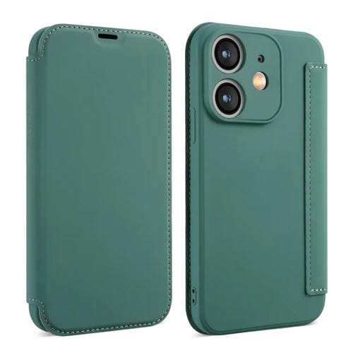 Funda para Teléfono iPhone 12 Mini Imitación Cuero Sensación Piel Líquida Ranuras para Tarjetas (Verde)