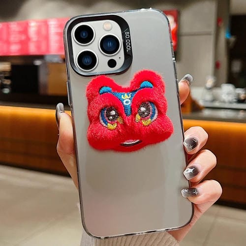 Estuche para Teléfono iPhone 12 Pro Muñeco Peluche Danza León Año Nuevo (Rojo) (Gris)