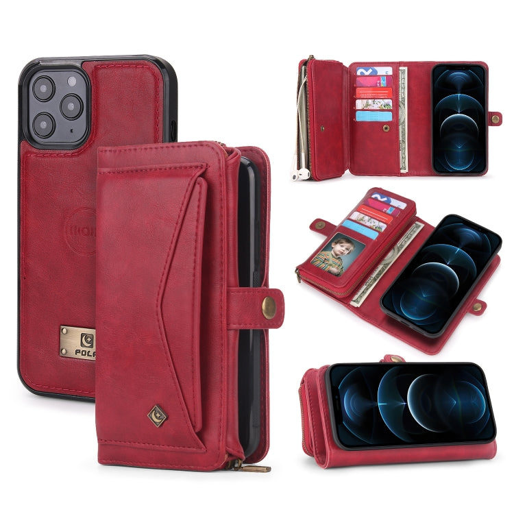 Funda de Cuero para Teléfono iPhone 12 Pro con Billetera y Cremallera Multifuncional (Rojo)