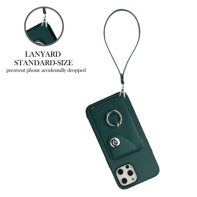 Funda para Teléfono iPhone 12 Pro PU con Soporte para Anillo y Bolsa para Tarjeta con Cordón (Verde)