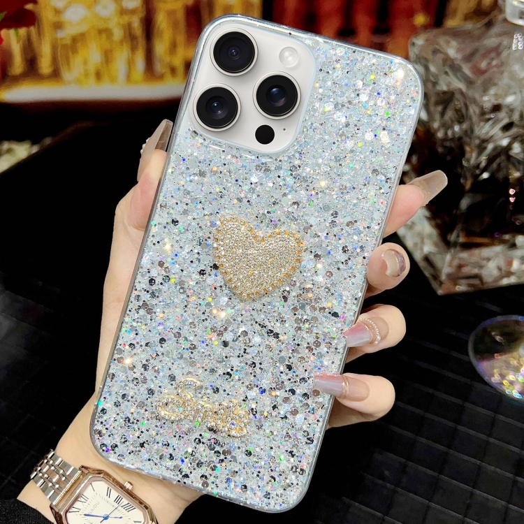 Funda para Teléfono TPU Epoxi iPhone 12 Pro Corazón Diamante Lentejuelas (Plateado)