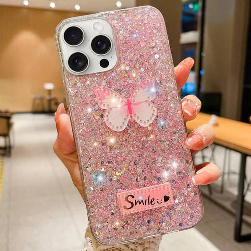 Funda para Teléfono TPU Epoxi para iPhone 12 Pro con Diamantes de Imitación y Lentejuelas Estrelladas (Rosa)