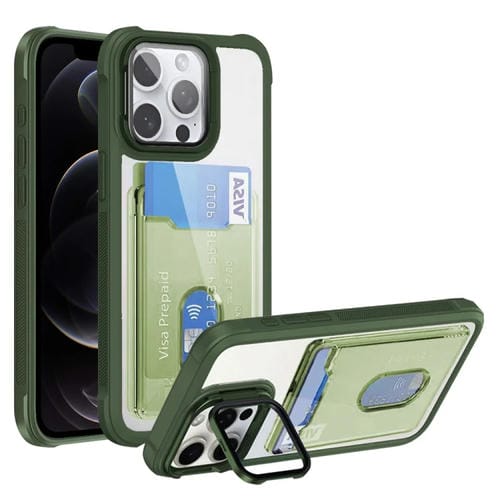 Funda para Teléfono iPhone 12 Pro TPU Híbrido Acrílico con Soporte para Tarjeta (Verde)