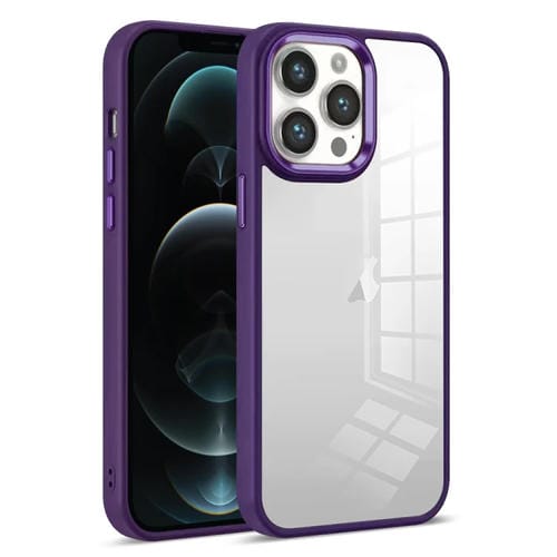 Funda para Teléfono iPhone 12 Pro Transparente con Armadura Colorida (Púrpura)