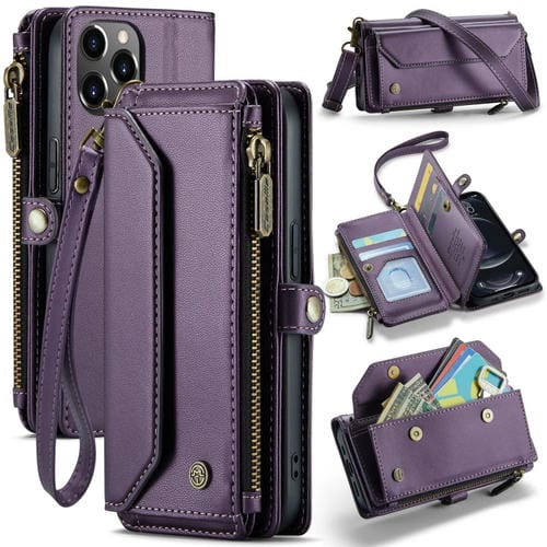 Funda para iPhone 12 Pro Max Caseme C36 Cartera con Ranuras para Tarjetas y Cremallera Cuero Antirrobo Rfid (Púrpura)
