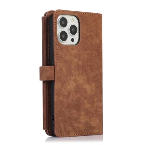 Funda para Teléfono iPhone 12 Pro Max Dream 9-Card Wallet Zipper Bag Cuero (Marrón)