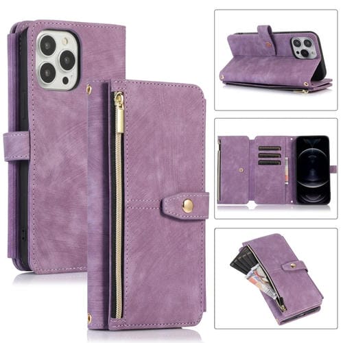 Funda de Cuero para Teléfono iPhone 12 Pro Max Dream 9-Card Wallet Zipper Bag (Púrpura)