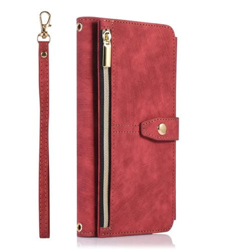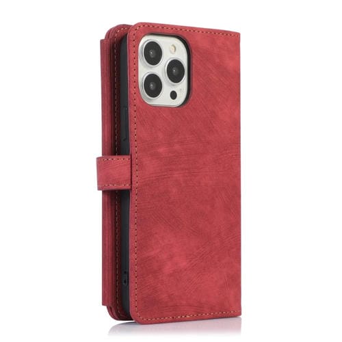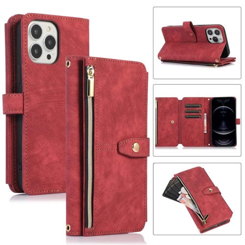 Funda de Cuero para Teléfono iPhone 12 Pro Max Dream 9-Card Wallet Zipper Bag (Rojo)